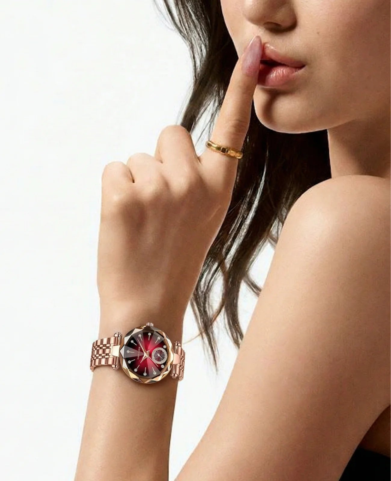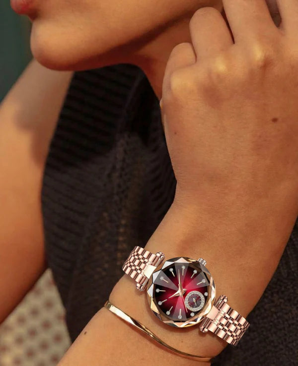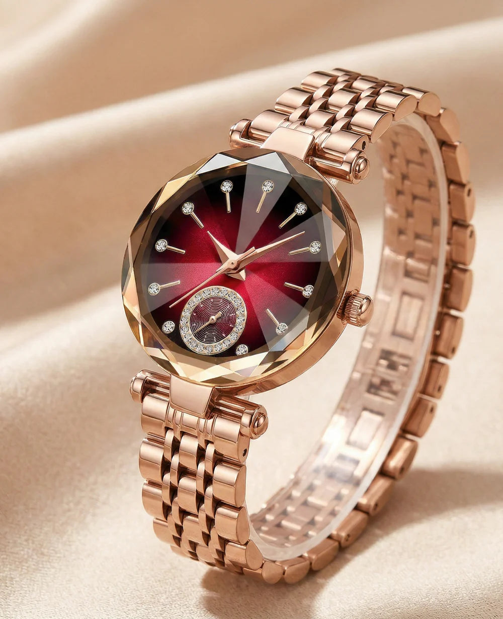 Emily WSo Elegant and Eye-CatchingThis watch is absolutely beautiful. The design is elegant without being over the top, and it instantly upgrades any outfit. I’ve worn it to work and to dinner events — it’s perfect for bothRuby Facet – Rose Gold Edition