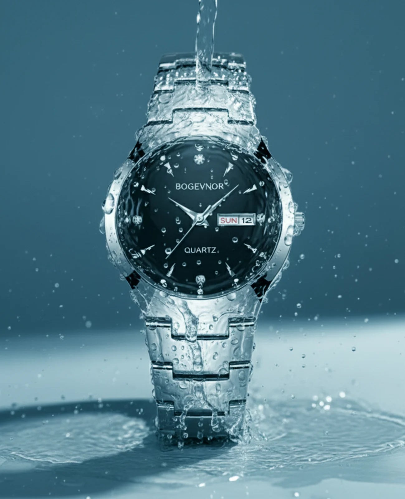 The watch's sealed structure protects the internal mechanism from splashes, rain, and everyday wear and tear. This water resistance makes it ideal for everyday use, providing peace of mind and durability. It is not designed for deep swimming or diving, but it is designed to accompany you safely in normal situations involving contact with water.